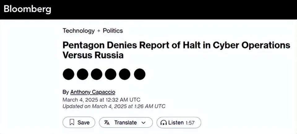 彭博社:五角大楼否定暂停对俄汇集行径的报说念 报说念截图