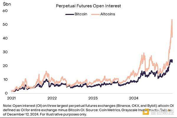 对比之下,盗窟币永续期货未平仓合约量(OI)升至高位。12 月 9 日周一大规模计帐前,三大永续期货往复所盗窟币 OI 近 540 亿好意思元(图 9),突显阛阓投契性多头握仓偏高。本周初大规模计帐后,OI 降约 100 亿好意思元但仍处高位。高投契性多头握仓契合阛阓周期后期特征,故需握续监测。